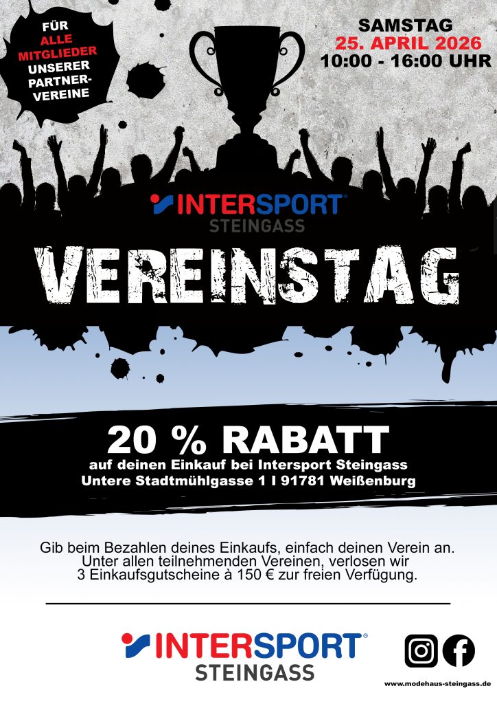 VEREINSTAG INTERSPORT STEINGASS Samstag, den 25.04.2026 von 10.00 – 16.00 Uhr